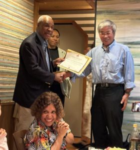 *10月11日Expo2025PavilionTEAM送迎会。ASPAは、Dusava万博大使から感謝状を授与されました。ASPAからはDusava万博大使にASPA名誉会員証と記念品をお渡しさせていただき、今後益々PNGとASPAとのきずながより発展的に、有意義に次世代につながるよう、ASPA活動推進アシストをお願いいたしました。